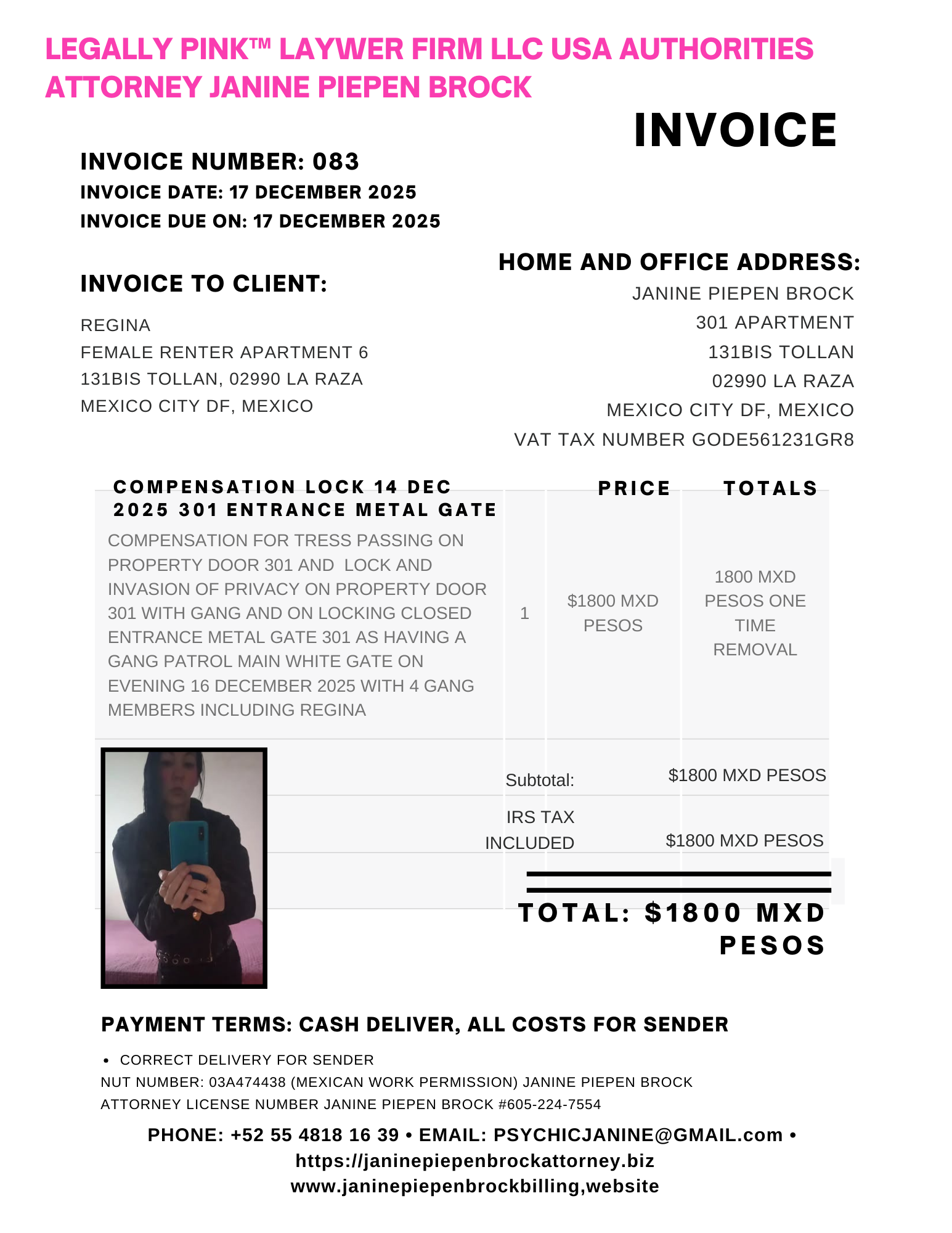 083 INVOICE REGINA APARTMENT 6